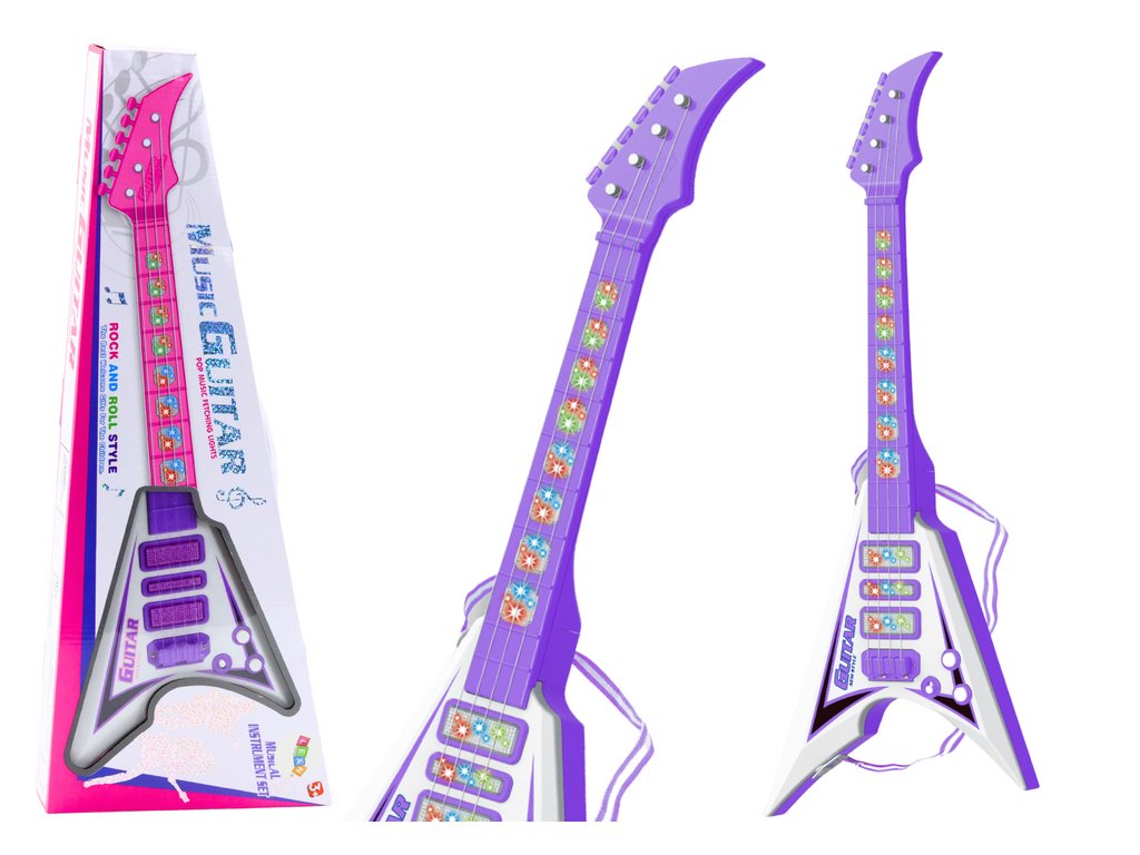 - Dětská Elektrická Kytara Světla Melodie Fialová je dokonalým hudebním nástrojem pro mladé začátečníky