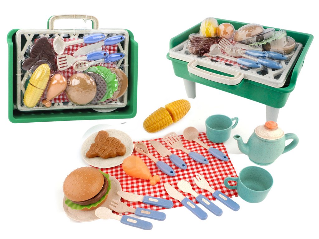 Dětská Grilovací Sada Mini Gril Náčiní Talířky Hrníčky