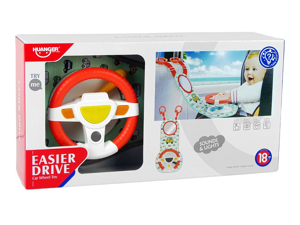 Hračka má také světla a zvuky, které pomáhají rozvíjet smysly vašeho dítěte. Dítě může pomocí tlačítek zapnout zábavnou hudbu, klakson, blinkry a nastartovat motor. Tento volant také pomůže ve vývoji vašeho dítěte. Hračka je ideálním a originálním řešením pro malé řidiče.