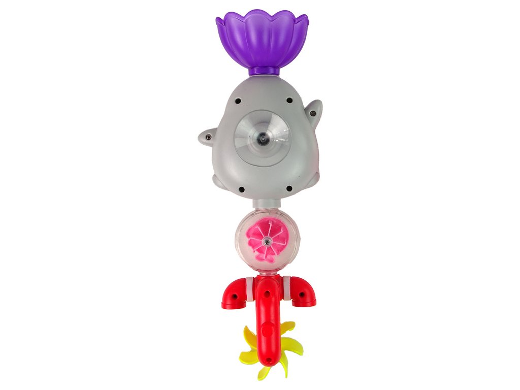 - Na vrcholu hračky je fialový květ, do kterého stačí nalít vodu a ta chytře proteče celou hračkou a spustí magické pohyby a zábavné efekty