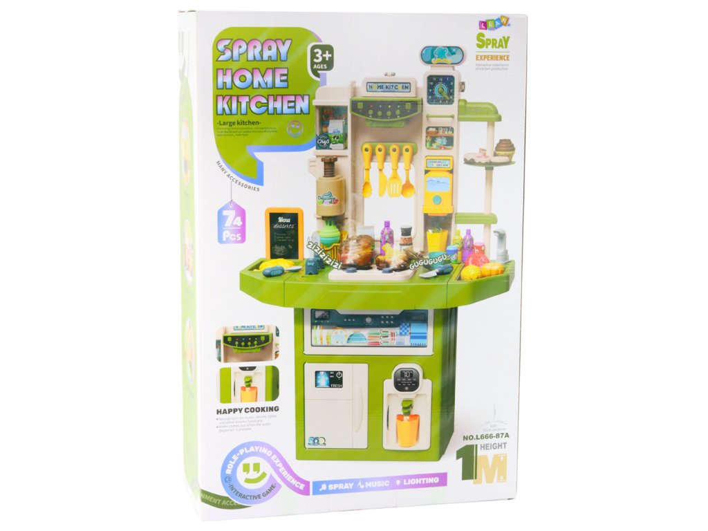Dětská kuchyňská sada SPRAY HOME KITCHEN s 71 díly je ideální volbou pro malé nadšence vaření Tato velká kuchyňka umožňuje dětem volnou, kreativní a realistickou hru na vaření, pečení, podávání jídel a mytí nádobí