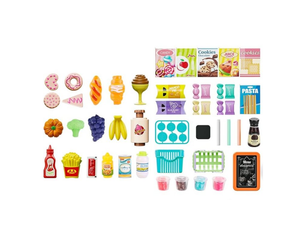 Bohatý soubor příslušenství zahrnuje mimo jiné hrnce, příbory, potraviny, zeleninu, ovoce, talíře, nápoje a koření, což dává dítěti pocit, jako by bylo ve skutečné kuchyni Tato hračka je vybavena řadou moderních interaktivních funkcí: efekt páry, realistické zvuky vaření, barevná LED světla a hudba a zvukové příběhy, které se aktivují pomocí ovládacího panelu