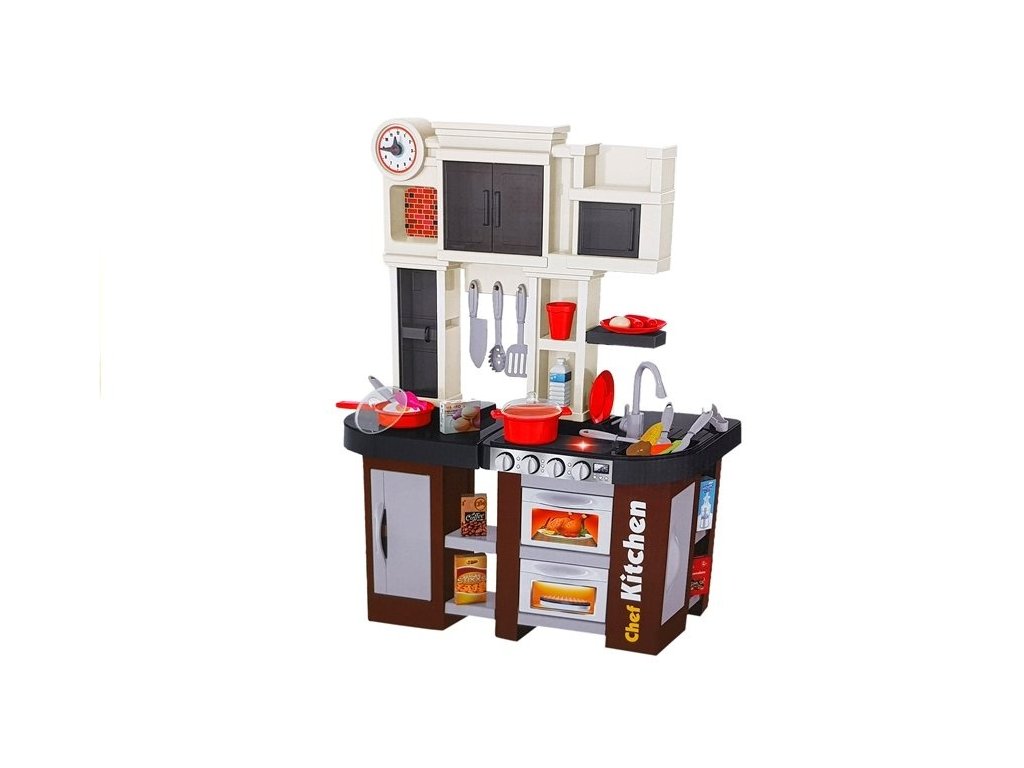Velká kuchyňka s hodinami a vodou z kohoutku Vedení vlastní domácnosti není jen skvělá zábava, ale také velmi rozvíjející činnost, díky které se dítě může naučit mnoho důležitých věcí velmi příjemným způsobem.