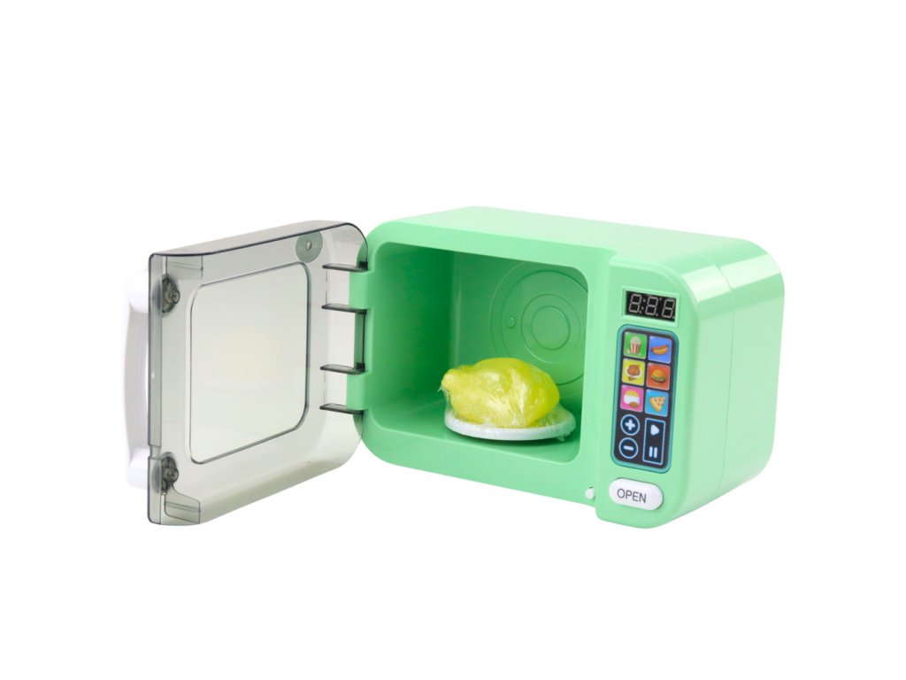 Dětská mikrovlnná trouba – zelená se zvukovými efekty a příslušenstvím je skvělá volba pro každého malého kuchaře, který rád napodobuje dospělé a hraje si na vaření.