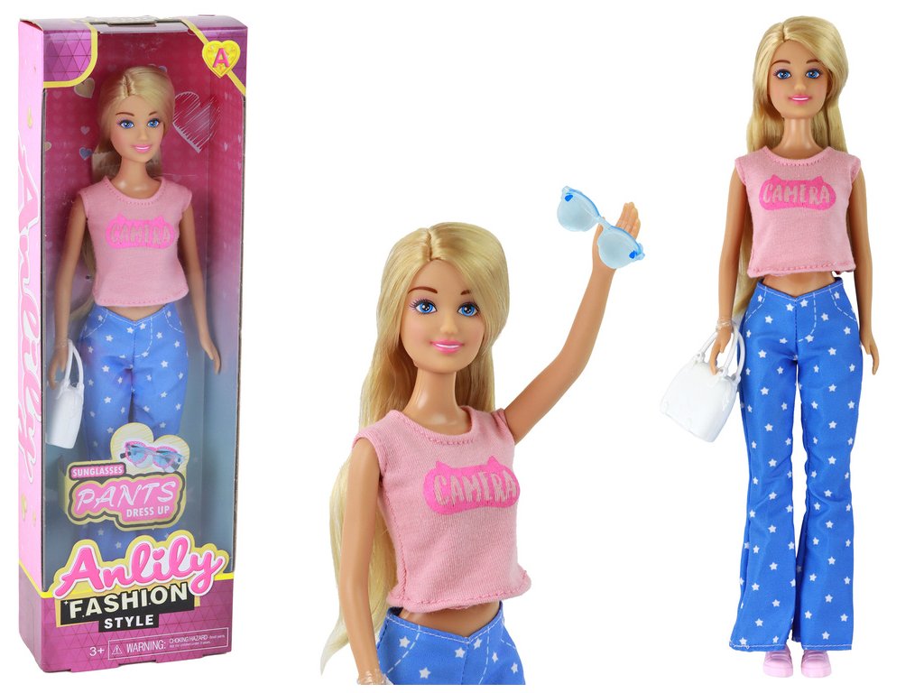 Panenka pro děti Anlily Dlouhé blond vlasy Kabelka Brýle Růžová blůza V našem internetovém obchodě představujeme jedinečnou panenku Anlily, která potěší každé dítě Tato panenka má rozměry 30 cm x 7 cm x 5 cm a je skutečnou módní ikonou