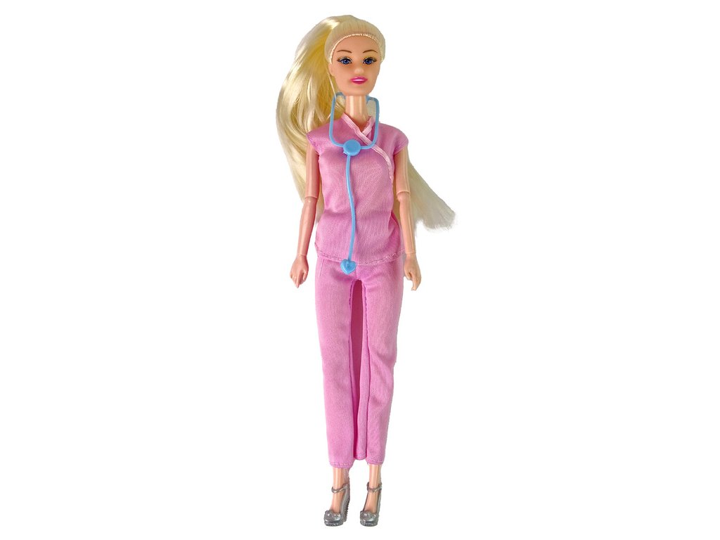 Panenka pro děti Doktorka s dlouhými vlasy a doplňky Představujeme jedinečnou panenku lékařku, která potěší malá srdíčka svými dlouhými, roztomilými blond vlasy a modrýma očima Její oblečení v podobě růžového pláště lékařského profesionála a kalhot v kombinaci s elegantními stříbrnými botami na podpatku vytváří sebevědomý a stylový vzhled