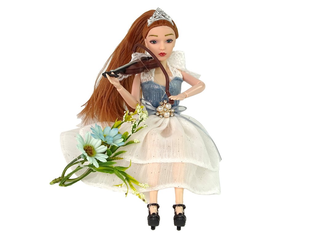 Panenka pro děti Emily Housle Květiny Představujeme vám roztomilou panenku Emily s dlouhými rudými vlasy, oblečenou v elegantních šatech zdobených brokátem a mašlí s perlami Její vlasy jsou upravené do culíku a zdobí je čelenka, modré oči dodávají panence na půvabu