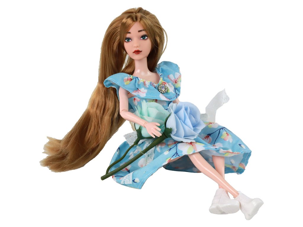 Dětská Panenka Emily Jarní Dlouhé Vlasy Modré Šaty Květiny