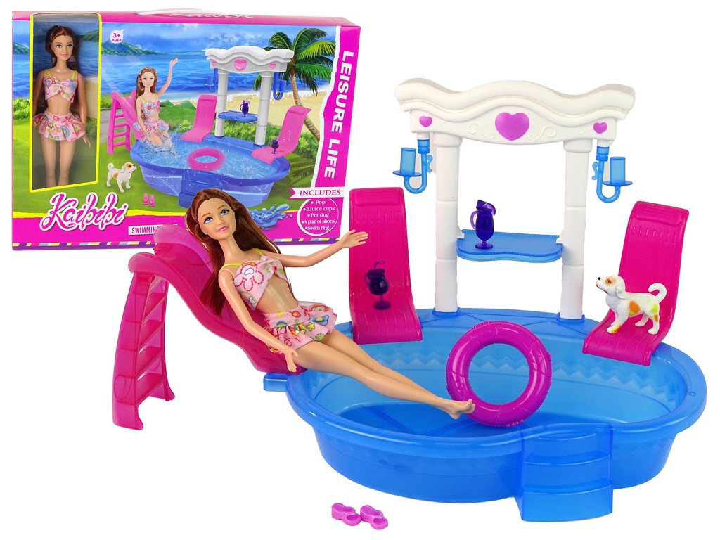 - Panenka pro děti Příslušenství Bazén Skluzavka Tato jedinečná panenka s dlouhými hnědými vlasy je připravena na letní zábavu u bazénu