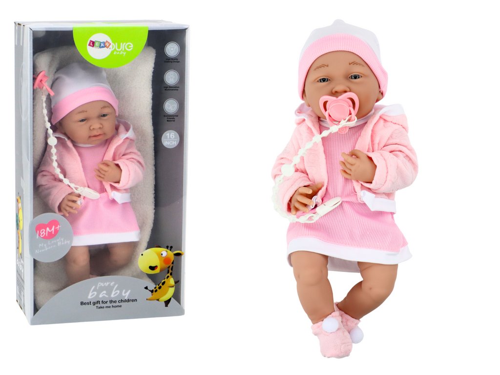 - Lalka Bobas Ze Smoczkiem Sukienka Czapeczka Różowa Kocyk Akcesoria 35 cm Panenka miminko je ideální společnice pro každou malou opatrovatelku