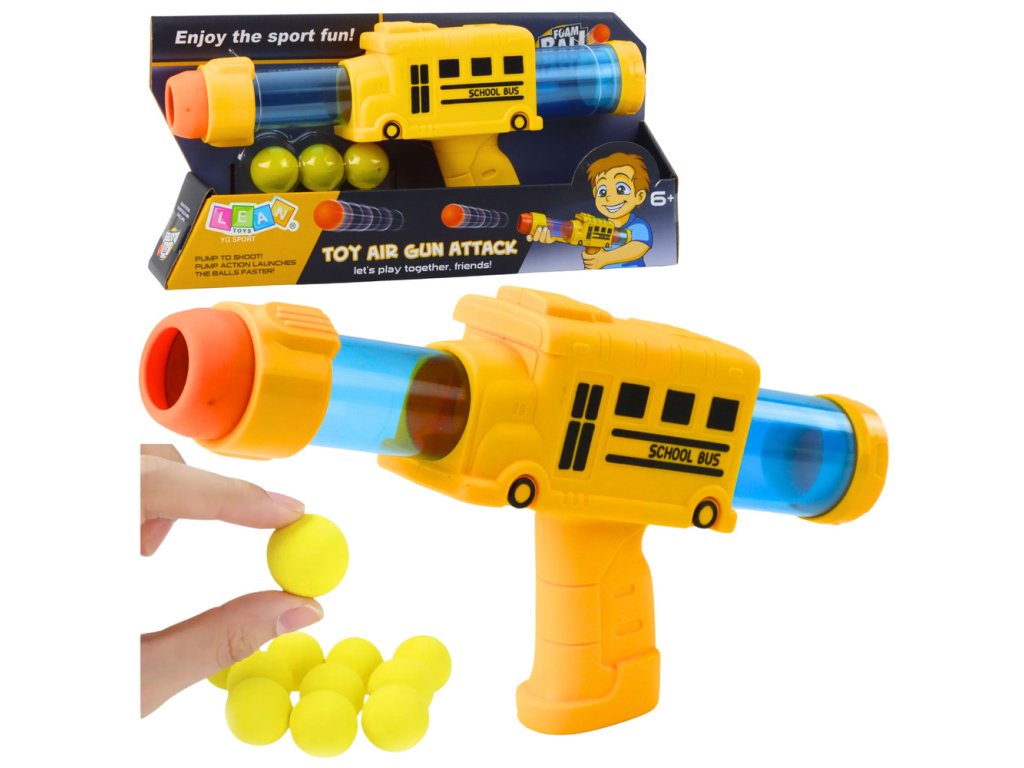 Dětská pistole Autobus na pěnové kuličky, žlutá, 6 ks