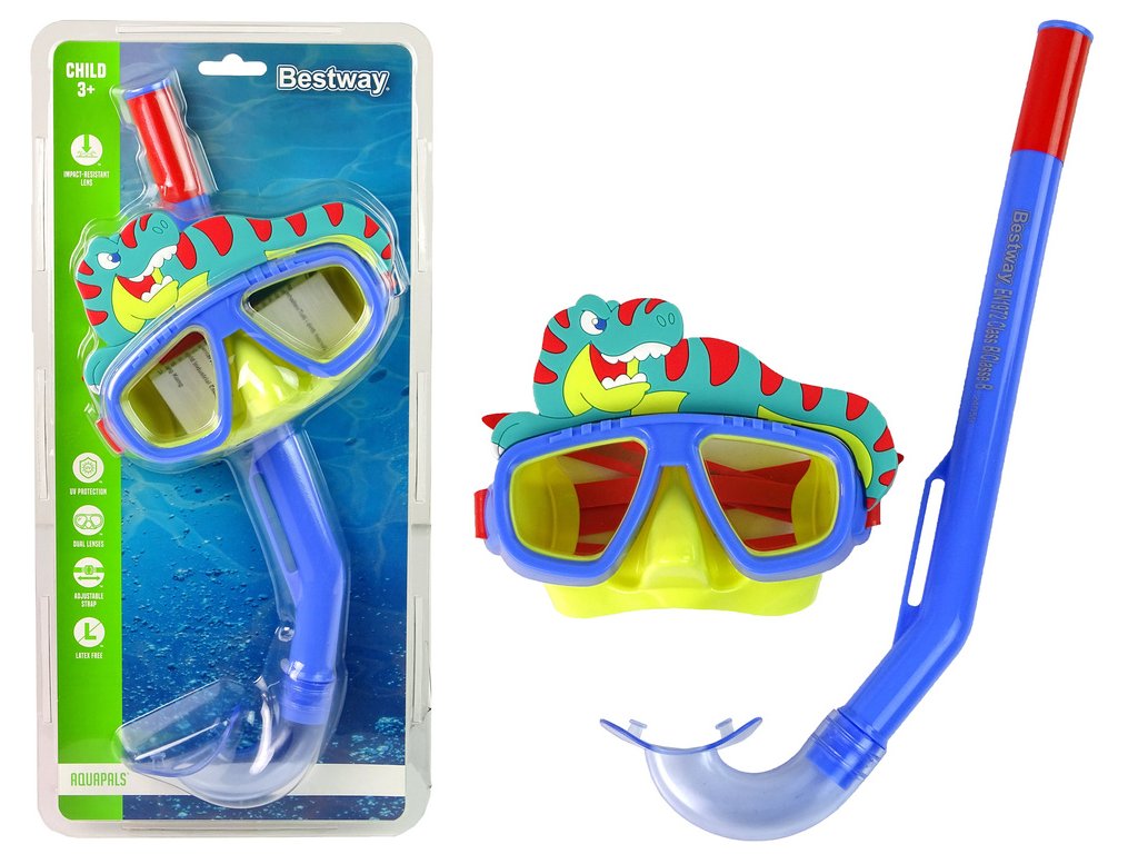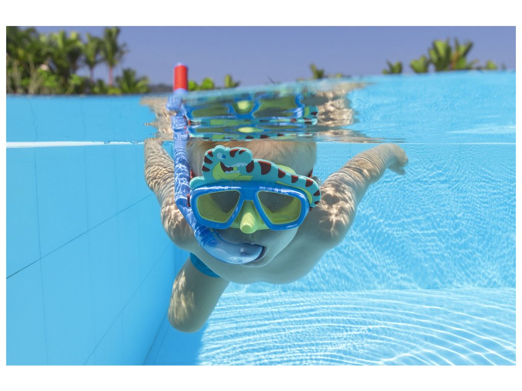 - Celý set obsahuje masku s motivem krokodýla a trubici s měkkým náustkem, a je ideální pro radovánky v bazénu či na dovolené