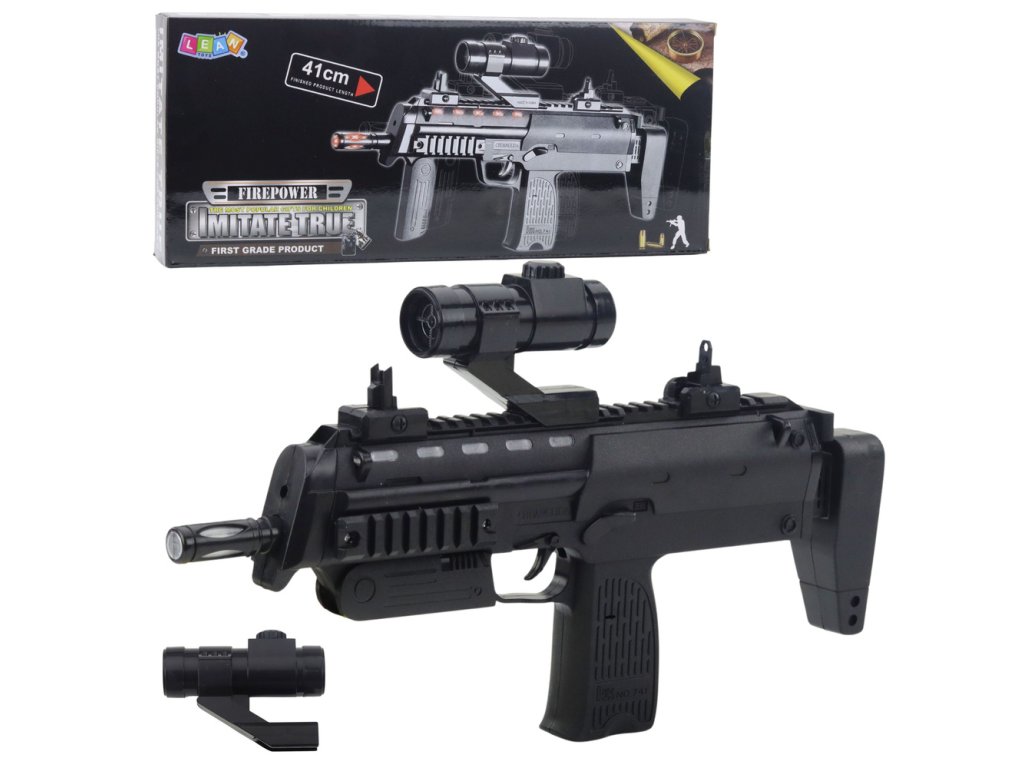Dětská puška hračka s efekty světel a zvuků s mířidlem černá 41 cm