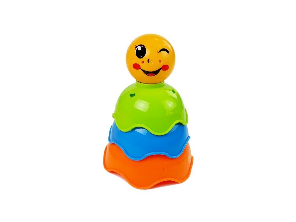 Na vrcholu hračky je nejmenší kelímek s potiskem veselé tvářičky Kelímky jsou vyrobeny z bezpečného, netoxického materiálu, který se vyznačuje pevností a odolností