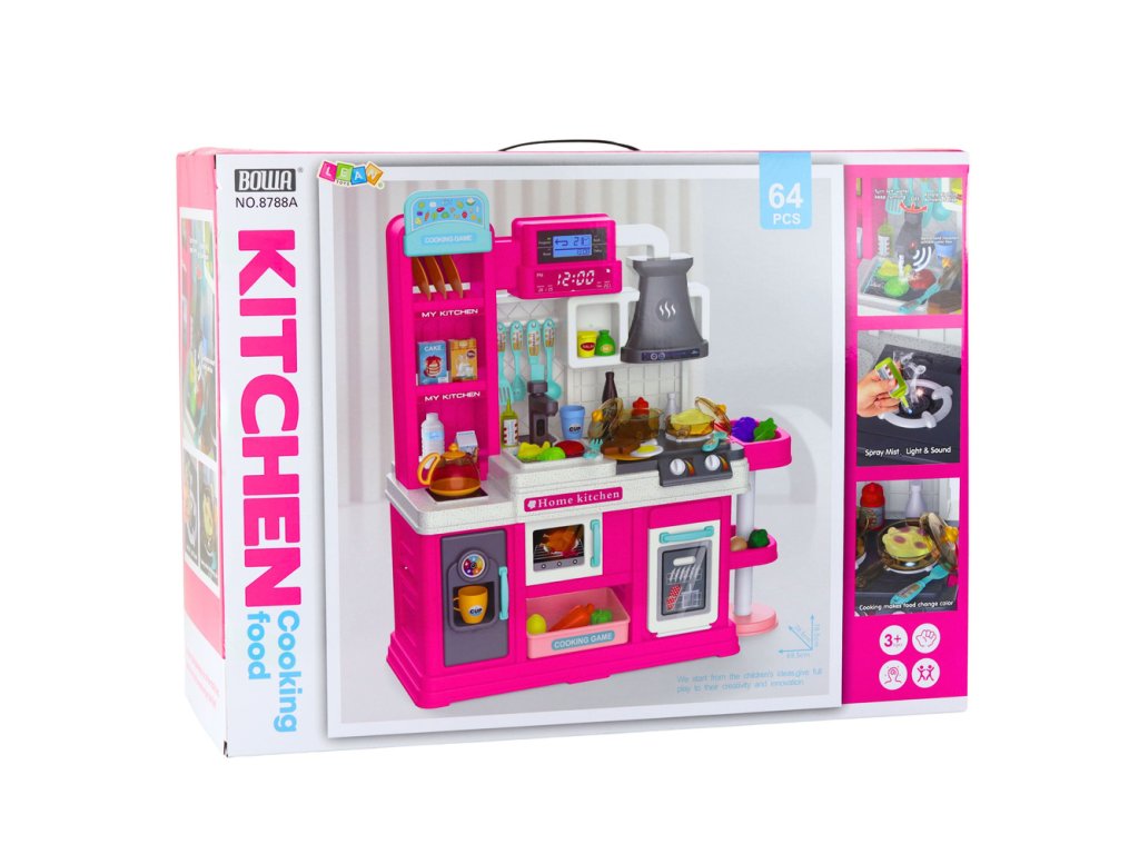 Dětská Růžová Kuchyňka s Parními Efekty a Změnou Barvy Jídla - 64 Dílů