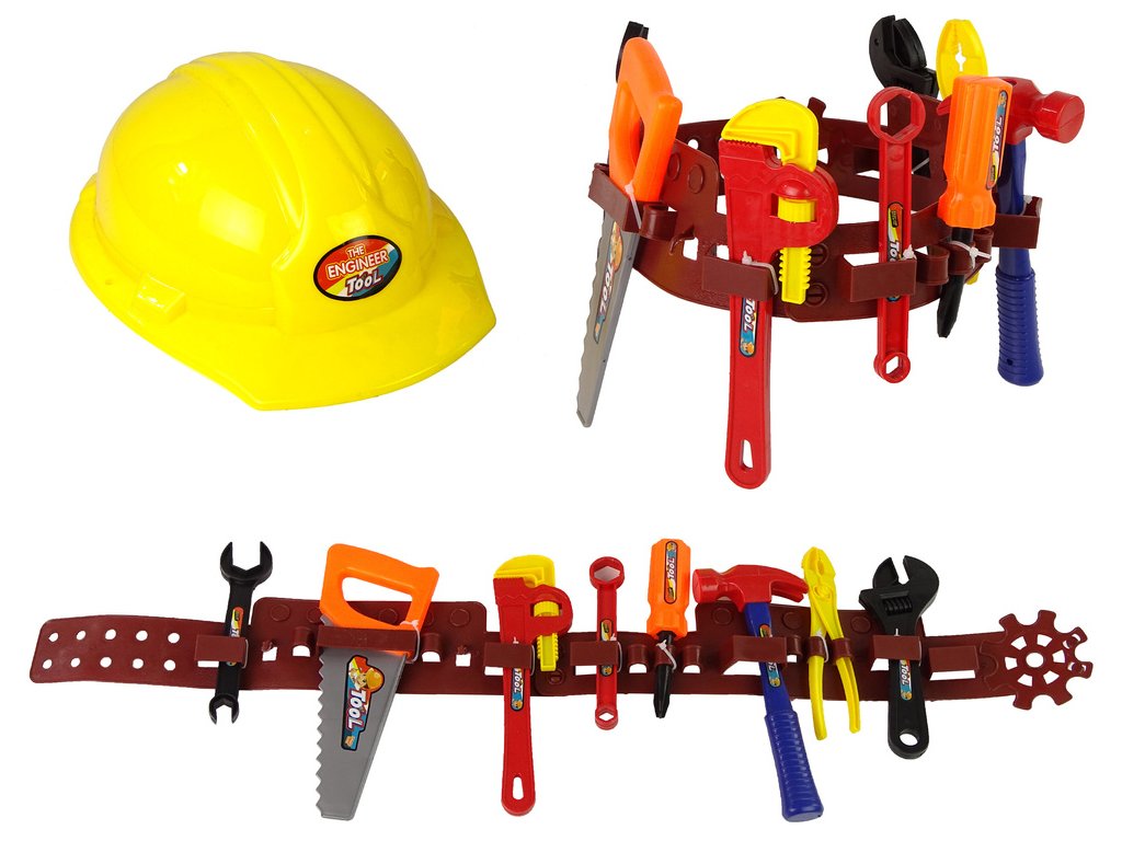 Sada pro kutily s opaskem na nářadí, přilbou a klíčem Sada pro kutily obsahuje nejdůležitější nářadí pro provádění jednoduchých domácích prací.