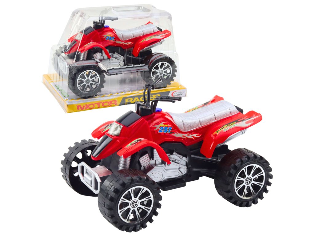 - Dětská terénní čtyřkolka s pohonem, červená je dynamická a efektní hračka, která přinese mnoho zábavy každému malému nadšenci do motorismu a off-road vozidel
