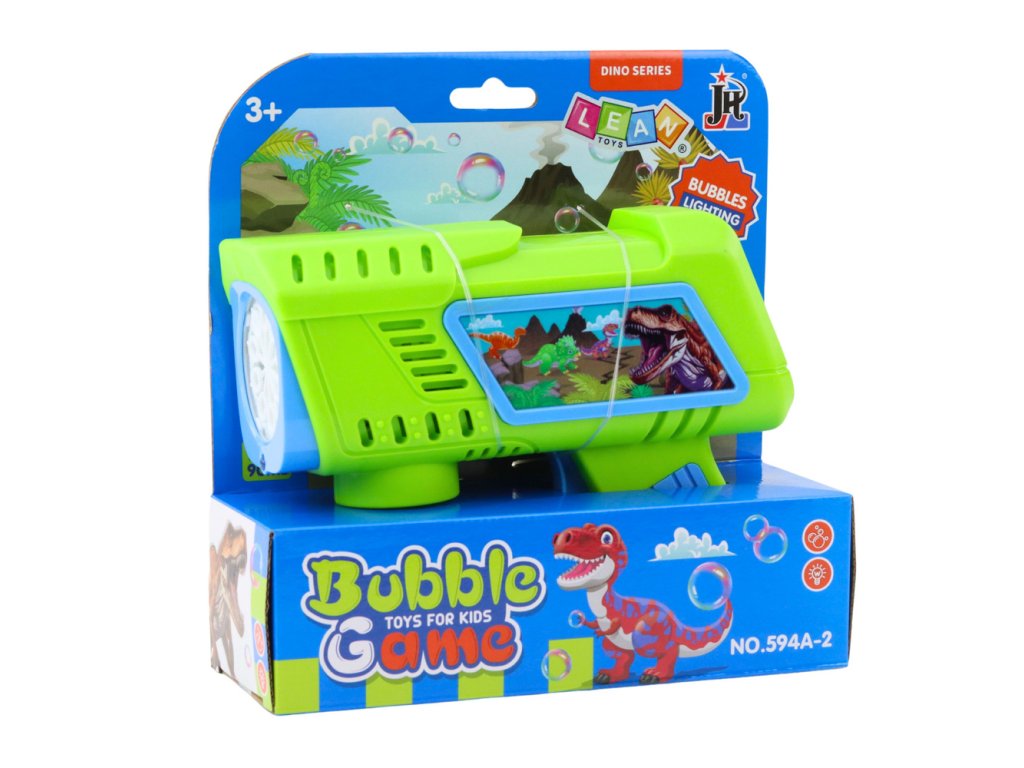 - Pistole na bubliny zelená s motivem dinosaurů je hračka, která zajišťuje skvělou zábavu a barevné chvíle pro nejmenší