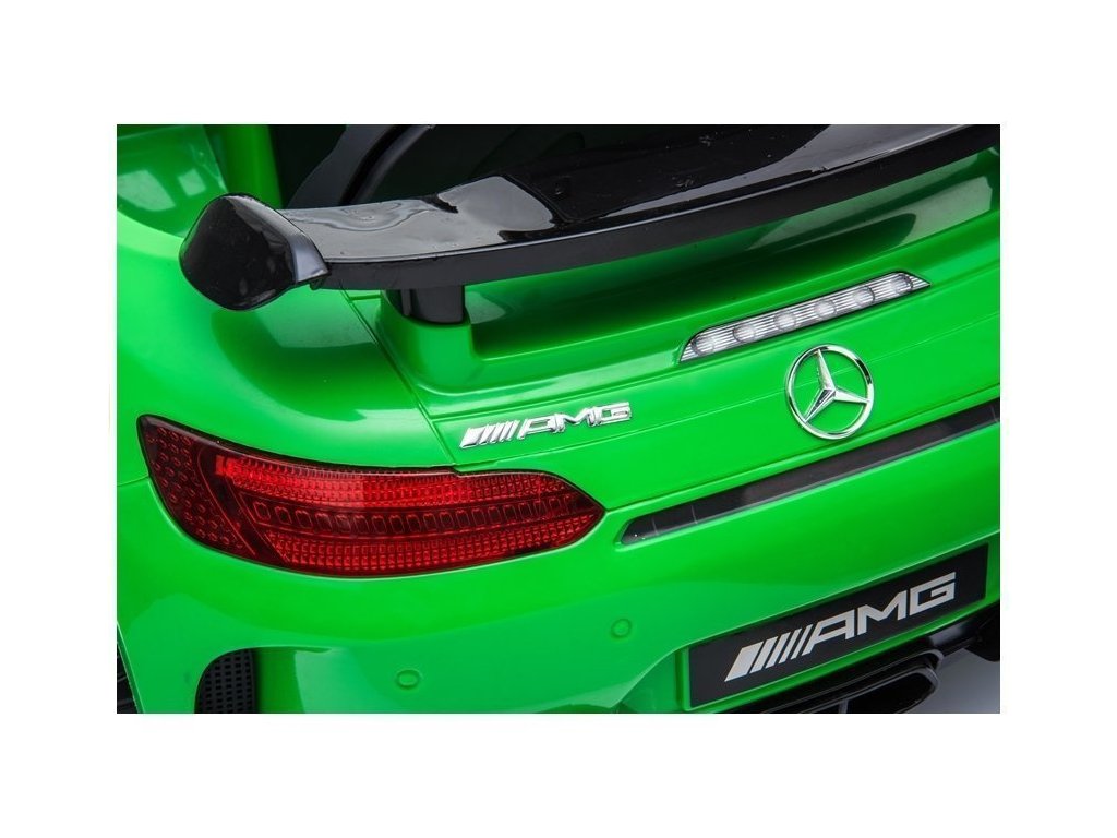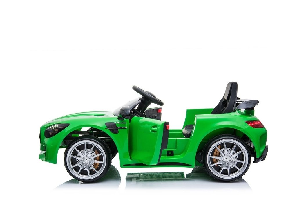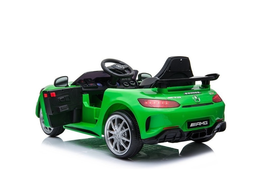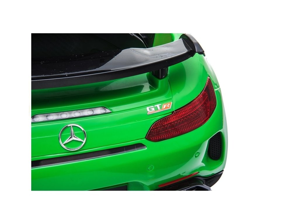 Dětské auto Mercedes GT R , zelené Fantastický vůz se tříramennou hvězdou Mercedes GT R je vozidlo, které bezpochyby upoutá pozornost všech kolemjdoucích