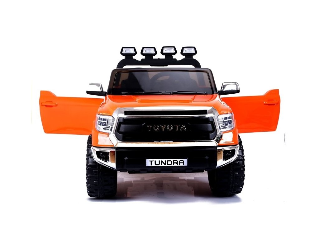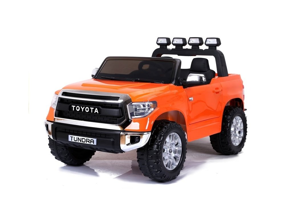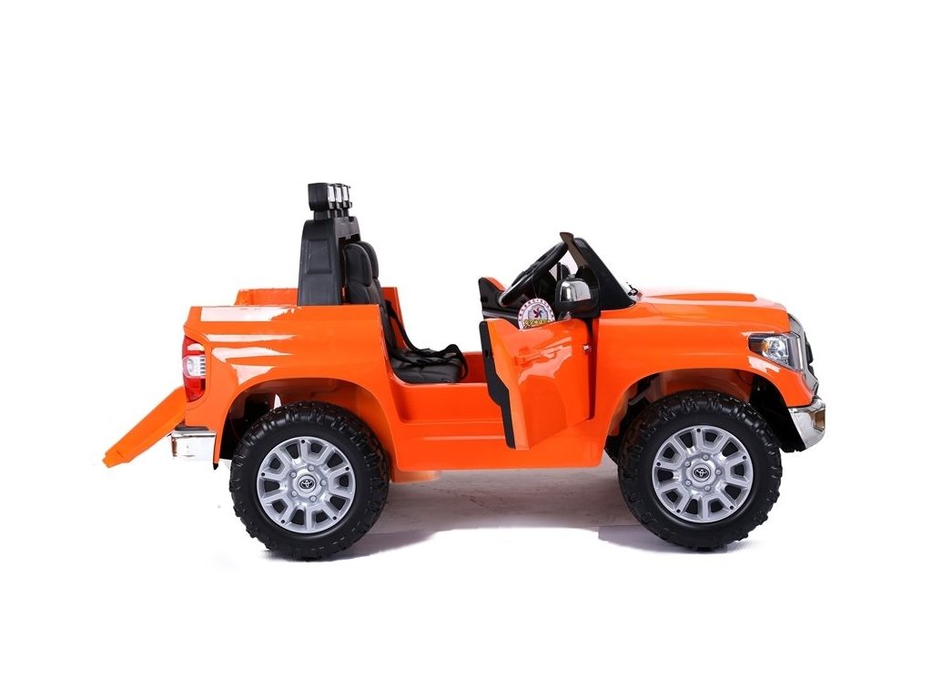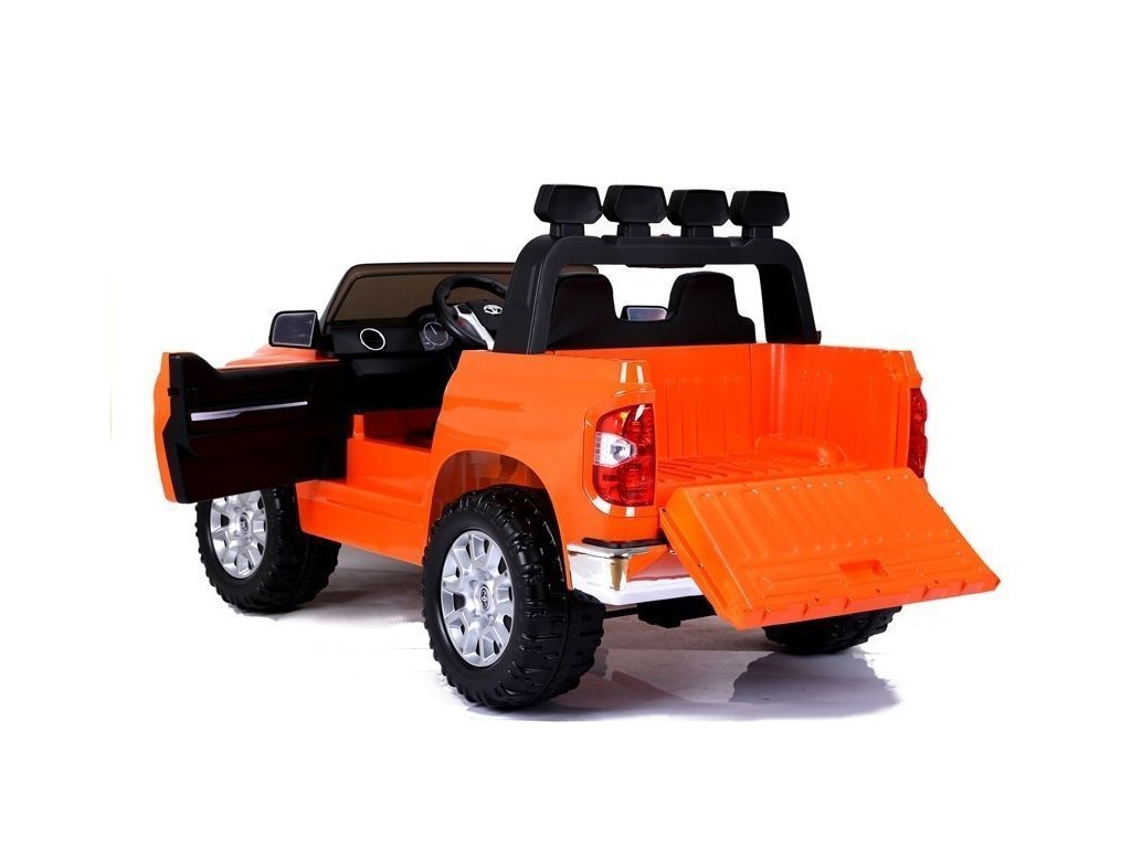 Elektrické auto pro děti Toyota Tundra s baterií - oranžová: Tento miniaturizovaný model je inspirován ikonickým pick-upem Toyota Tundra, který je navržen pro všechny terény, od bláta až po nerovné cesty a těžší náklady.