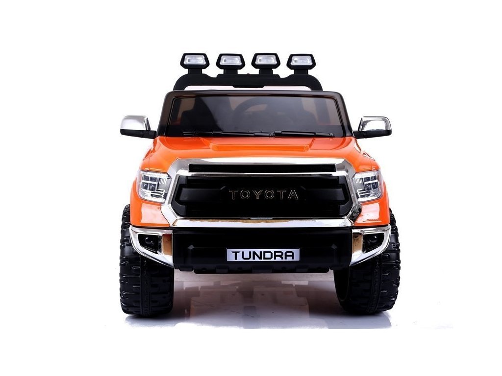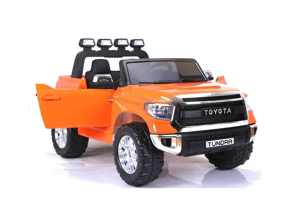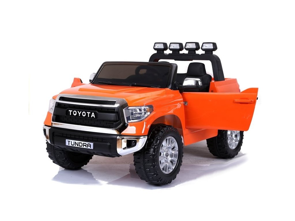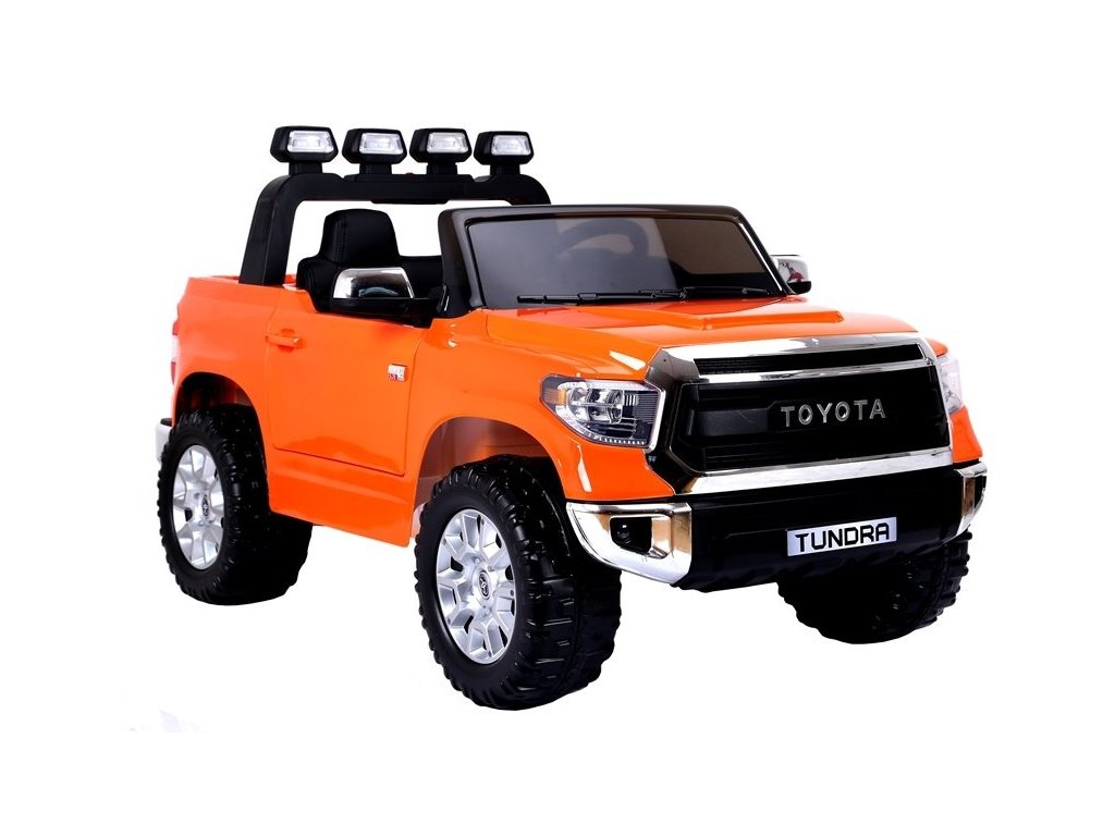 Elektrické auto pro děti Toyota Tundra s baterií - oranžová: Tento miniaturizovaný model je inspirován ikonickým pick-upem Toyota Tundra, který je navržen pro všechny terény, od bláta až po nerovné cesty a těžší náklady.