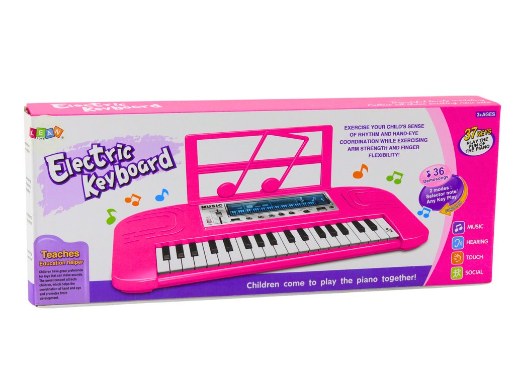 Elektrické piánko pro děti růžové barvy je ideální hračkou pro malé milovníky hudby Piánko má 37 kláves, což umožňuje vytvářet rozmanité melodie a zvuky, čímž poskytuje dítěti široké pole pro experimentování s hudbou