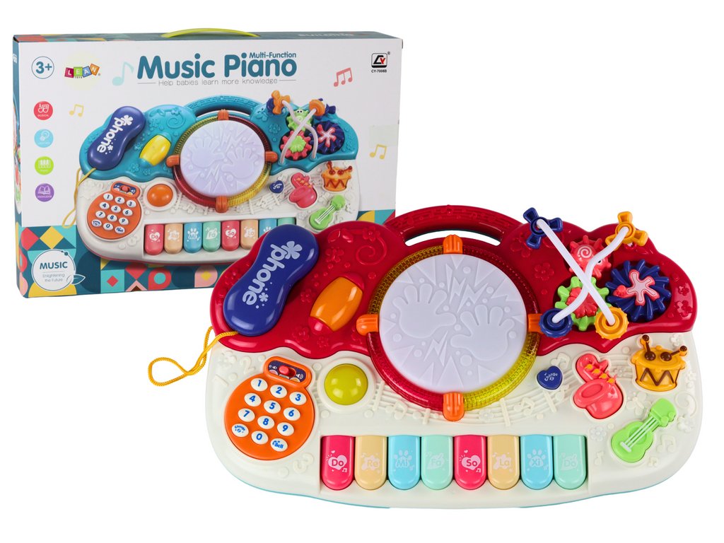 Organky Edukacyjne Pianinko Muzyczne Bębenek Dźwięki Światła Vzdělávací hudební klavír pro děti je interaktivní a kreativní nástroj, který stimuluje rozvoj nejmenších dětí prostřednictvím hry se zvuky, světlem a učením základních dovedností.