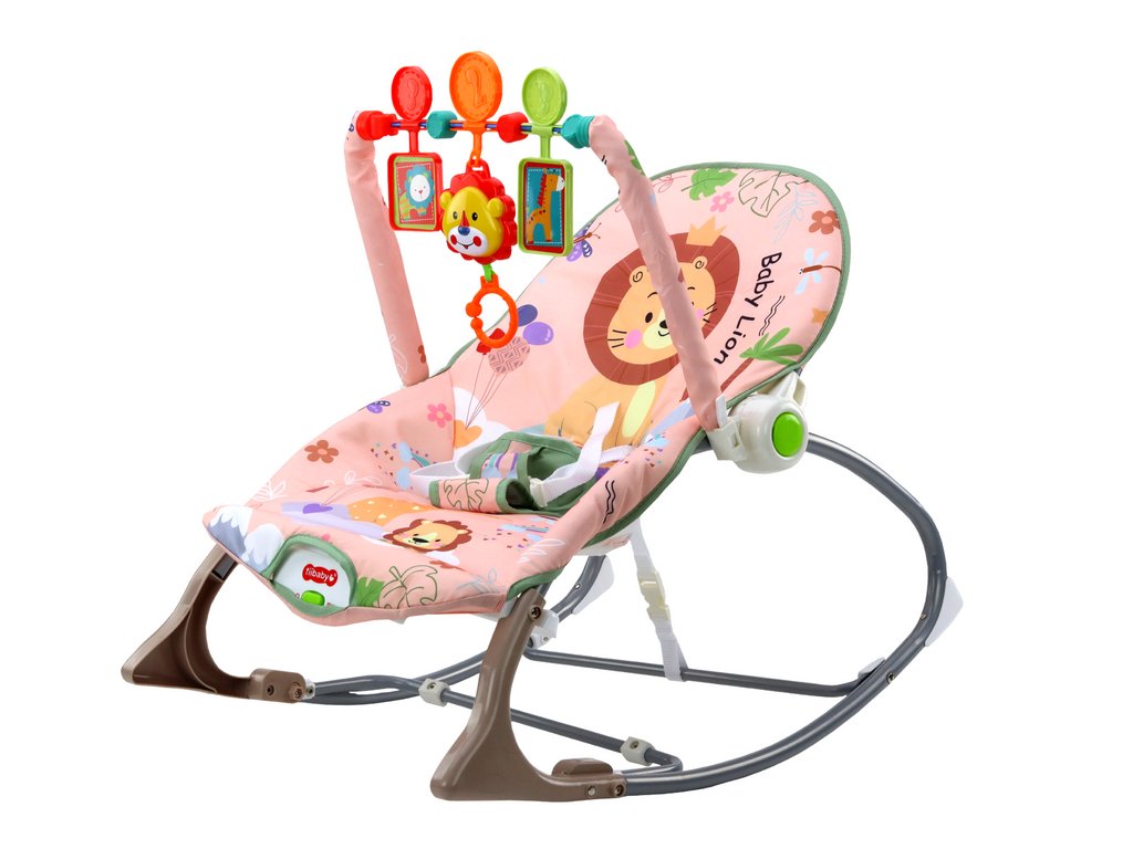 Houpací křeslo pro kojence s vibracemi a zvukem, růžový lev Houpací lehátko pro kojence s roztomilým motivem přátelského lva Naše houpací lehátko není jen pohodlným místem k odpočinku pro vašeho malého, ale také interaktivní hrací zónou, která stimuluje jeho vývoj