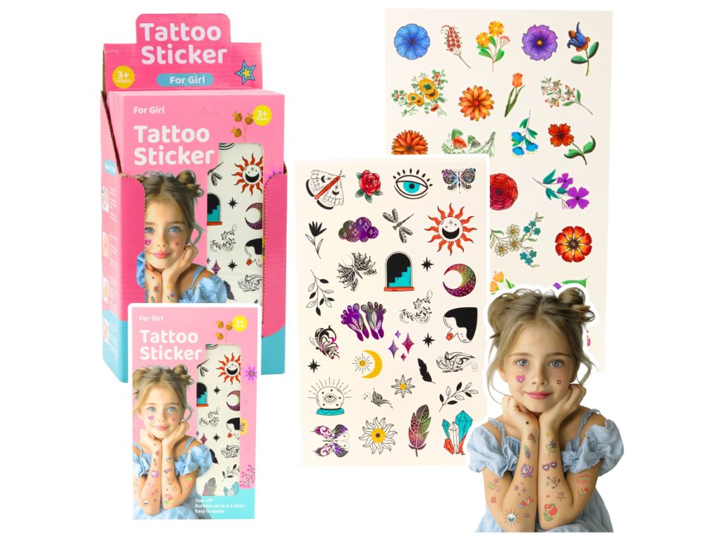 Udělejte svým dětem radost s naším barevným setem smývatelných tetování! Tento úžasný set nabízí 60 unikátních vzorů, které oživí každou dětskou představivost. Od romantických srdíček přes hvězdičky, květiny až po bajkové motivy, každý vzor přináší radost a inspiraci pro hravé duše. Díky jednoduché aplikaci stačí jen přilepit vybraný vzor, navlhčit hadříkem a jemně sejmout papír. Výsledek trvá 3-5 dní a lze jej snadno smýt teplou vodou a mýdlem. Naše tetování jsou nejen zábavná, ale i bezpečná – vyrobena z bezpečných barviv a lepidel, naprosto vhodná pro dětskou citlivou pokožku. Tento set je ideální volbou pro narodeninové oslavence, tematické party nebo jako odměna za dobré chování.