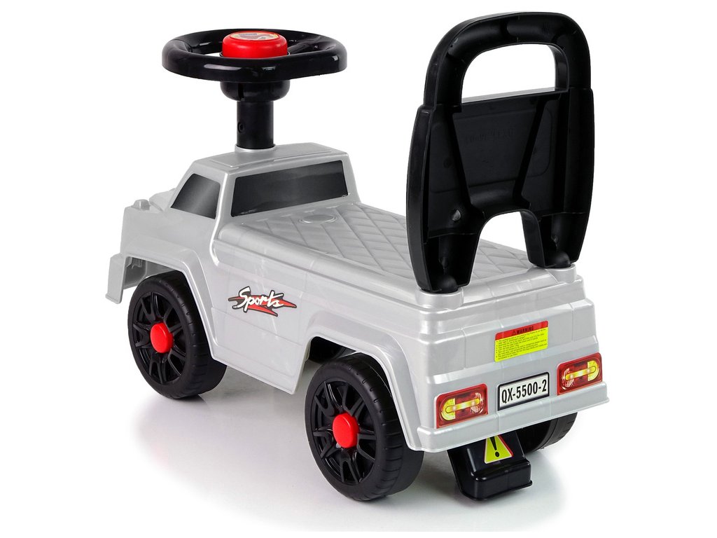 Autíčko QX-5500 2 klakson opěrka stříbrná Ježdítko je multifunkční hračka pro nejmenší děti