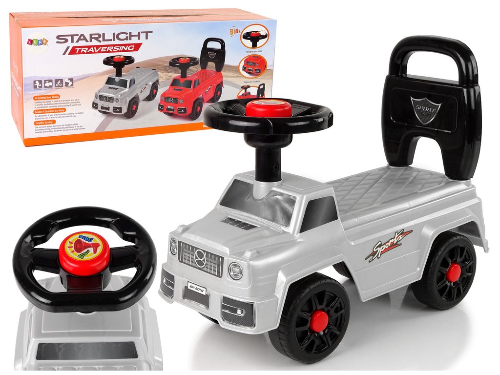 Autíčko QX-5500- 2 klakson opěrka stříbrná Ježdítko je multifunkční hračka pro nejmenší děti.