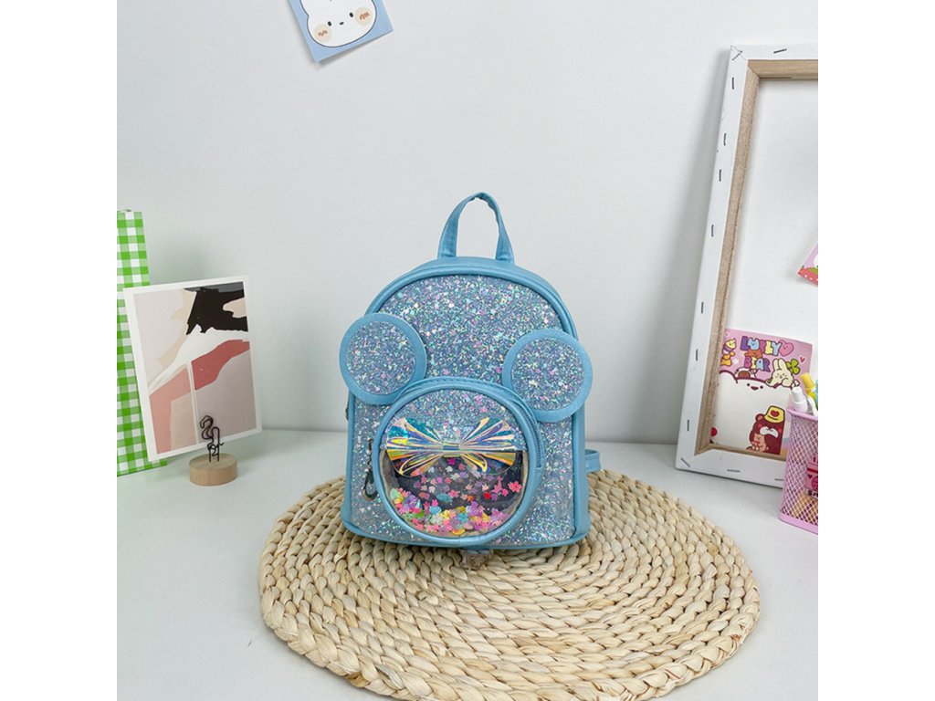 - Roztomilý dětský batoh s myšími motivy a třpytivými flitry je ideální volbou pro dívky, které ocení barevný a originální styl
