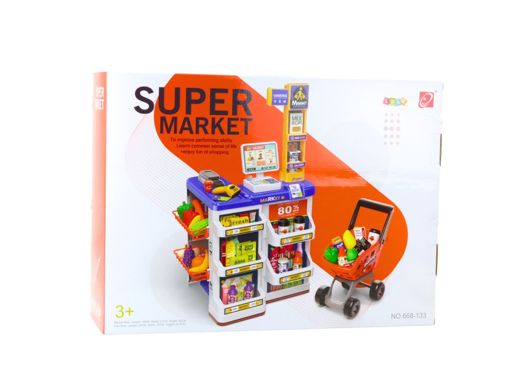 - V balení naleznete moderní pokladnu na baterie, realistický skener, supermarketový vozík a nejrůznější potraviny