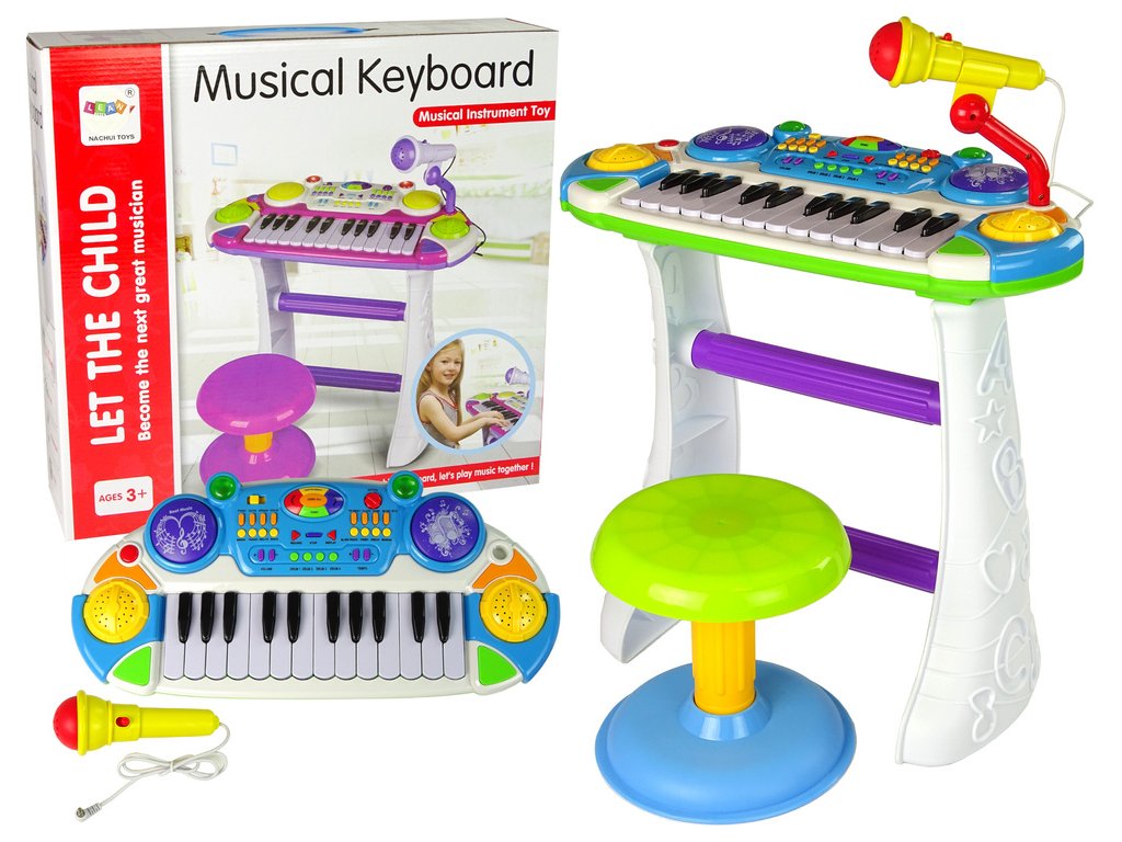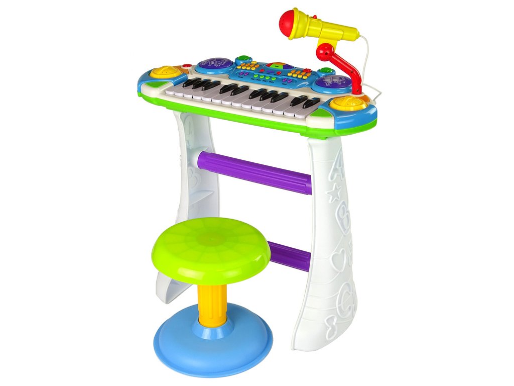 - Klávesový nástroj Sedadlo Mikrofon Modrý Hračky v podobě hudebních nástrojů rozvíjejí kreativitu nejmenších dětí a zároveň ovlivňují jejich koncentraci, trpělivost a koordinaci