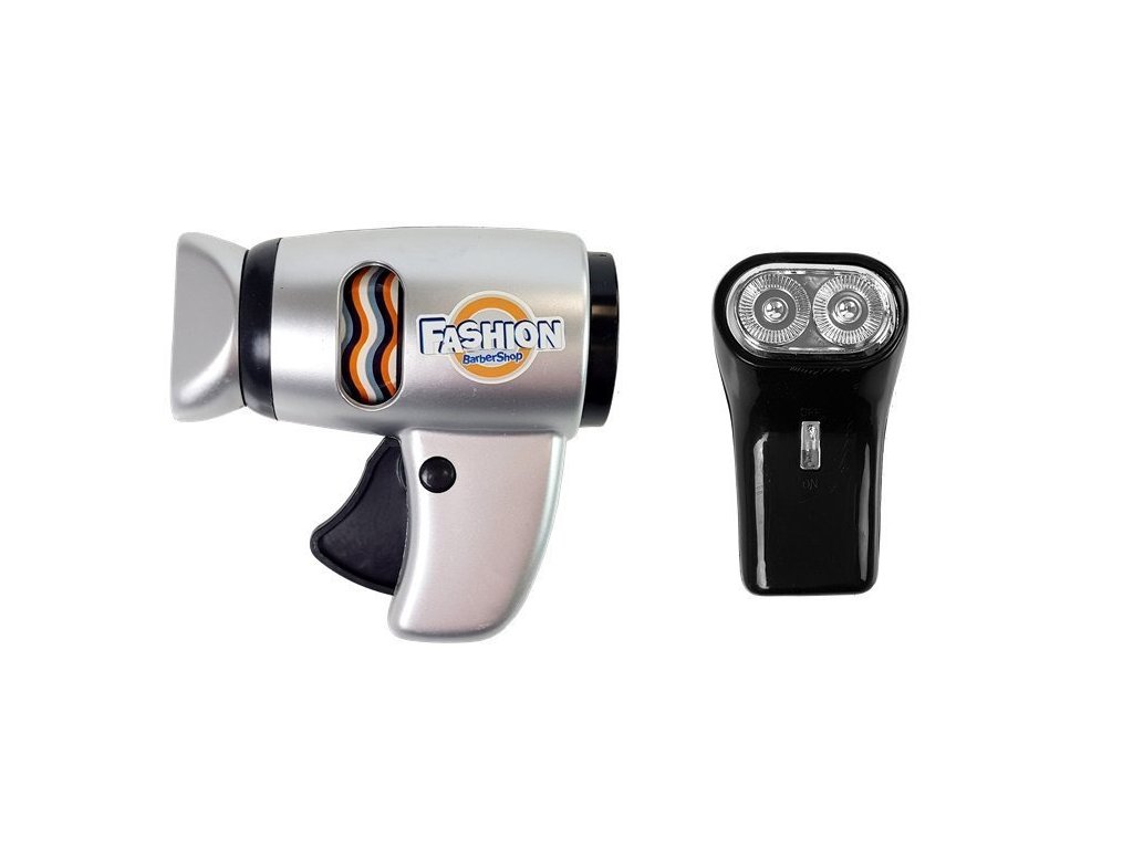 Dětský Kadeřnický Salon Set Barber Stříbrný Fén Strojek Příslušenství