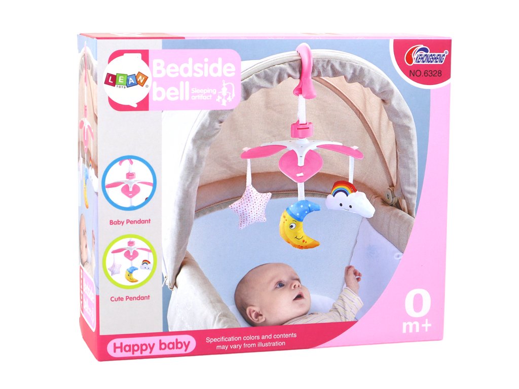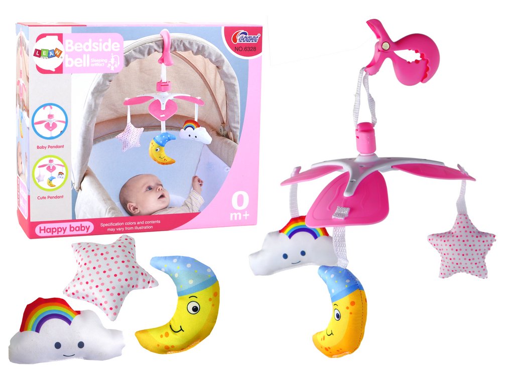 Karusel na postýlku pro děti s klipem, růžový Závěsná karusel pro děti na klipsu je roztomilý a praktický doplněk k vybavení pro kojence.