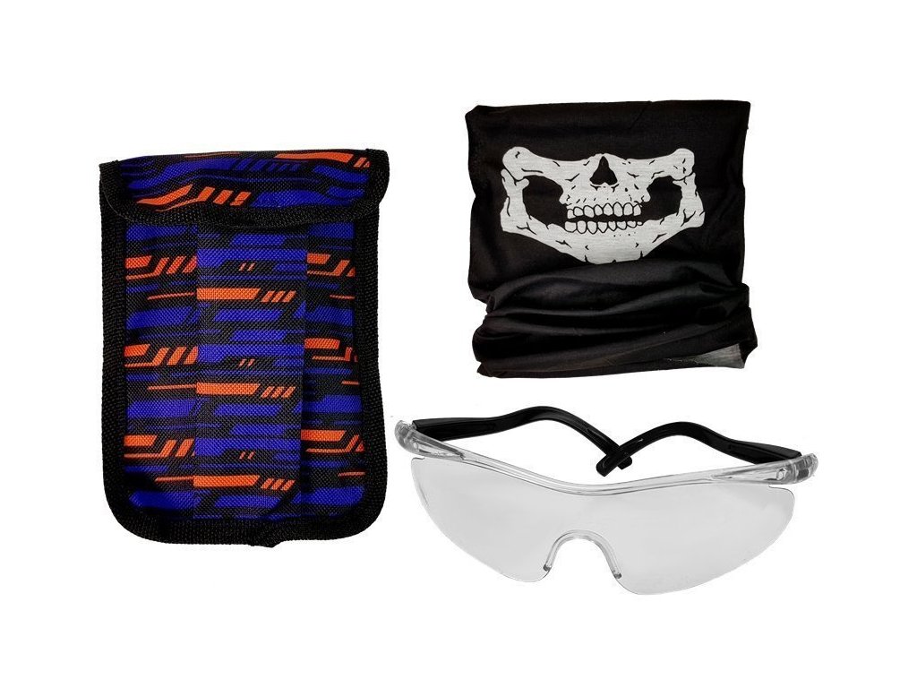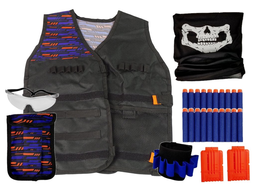 - Komandovou vestu s kapsami v realistickém černém, modrém a oranžovém provedení