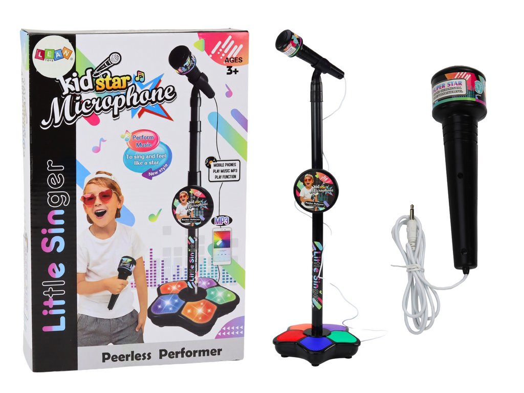 S mírnou hlasitostí při přehrávání je ideálním společníkem na oslavy či doma, aniž by rušil ostatní členy domácnosti Mikrofon je vybaven nastavitelným stativem, který umožňuje upravit výšku podle potřeby dítěte, čímž zajistí pohodlí a pohodlí během vystoupení