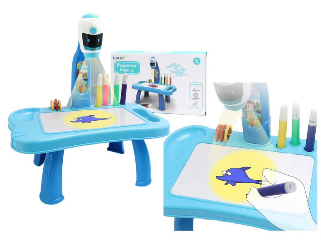 - Objevte kouzlo kreslení s naším Dětským Mini Projektorem Robot Stolek 2v1 v nádherném modrém provedení!