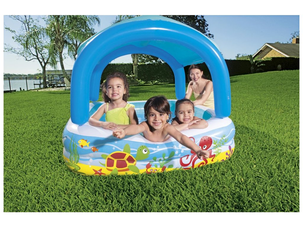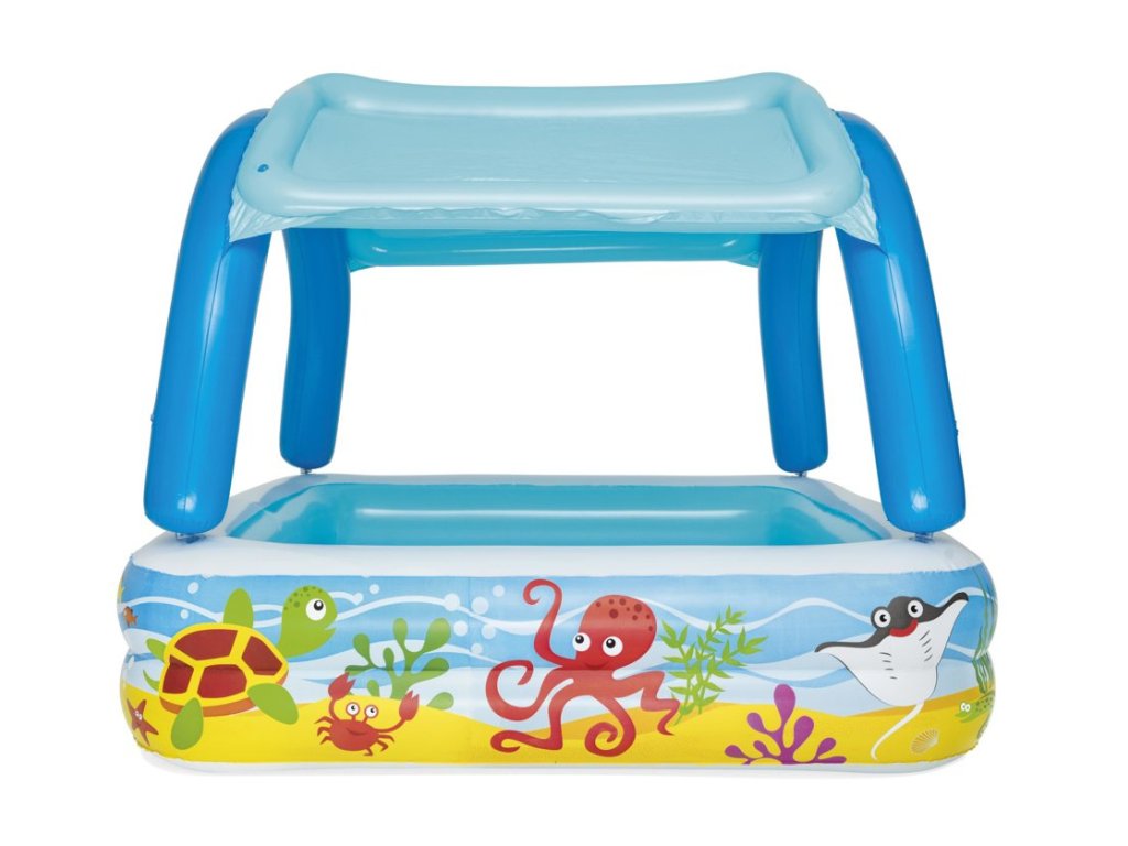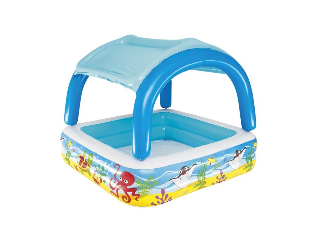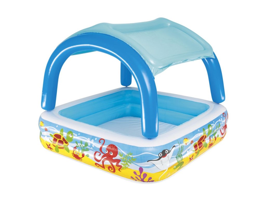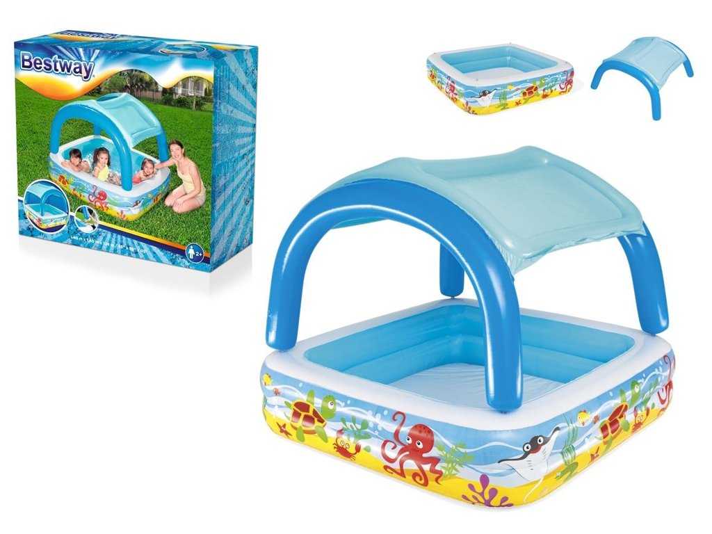 - Nafukací bazén pro děti s stříškou 140 x 140 x 114 cm Bestway 52192 Nafukovací bazén byl navržen tak, aby povzbudil děti k pohybu a zábavě na čerstvém vzduchu