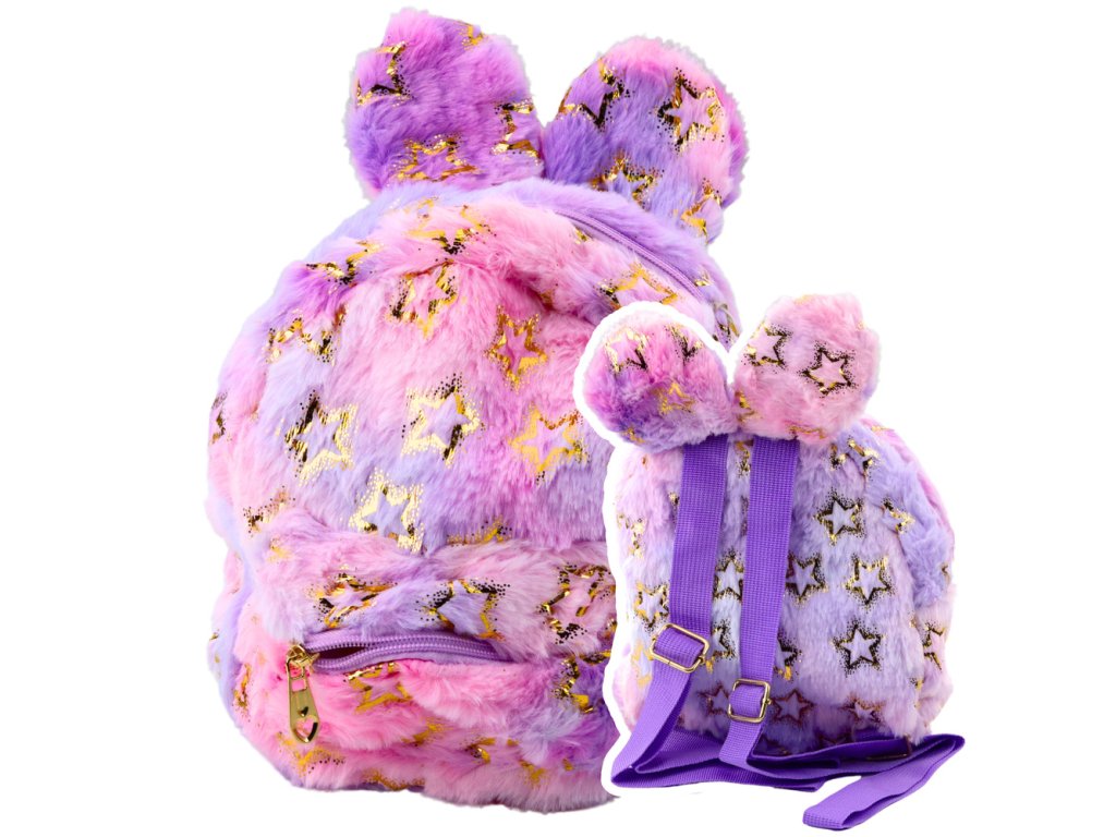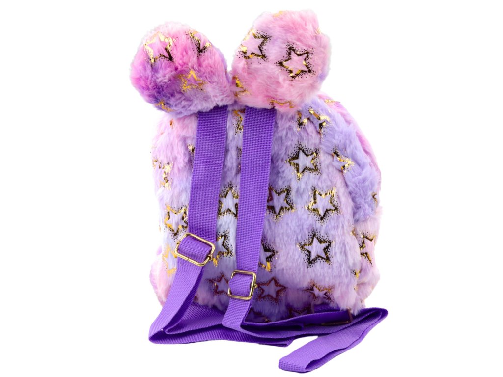 - Dětský plyšový batoh s ušima a hvězdičkami fialovo-růžový 24 x 22 cm Roztomilý, měkký batoh ve fialovo-růžové barvě, ozdobený třpytivými hvězdičkami a zakončený legračními, plyšovými ušima je vysněným doplňkem pro…