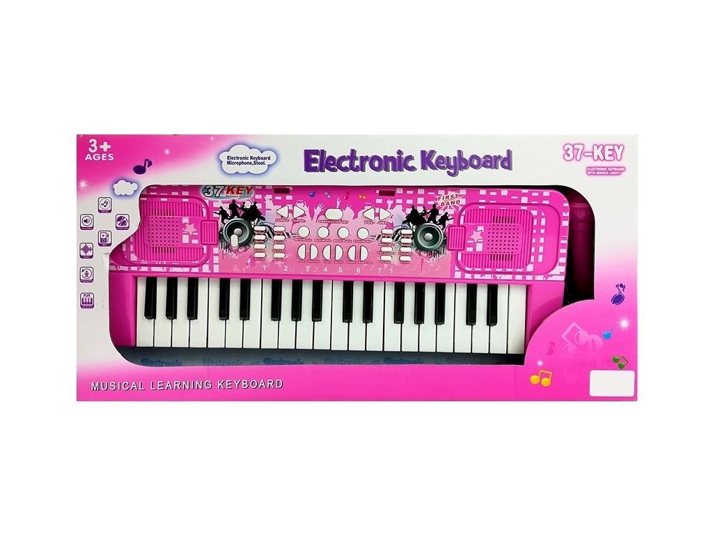 Dětský růžový klávesový nástroj s mikrofonem, 37 kláves