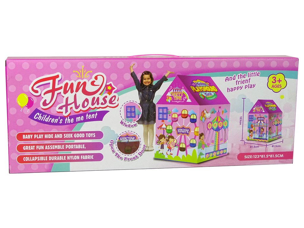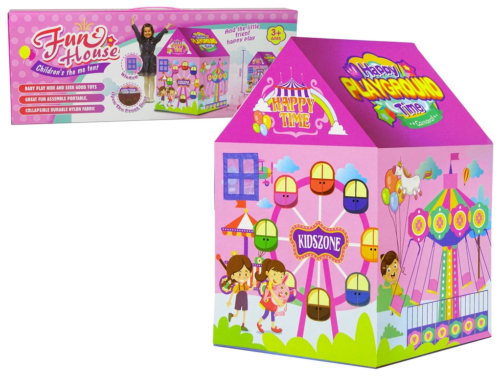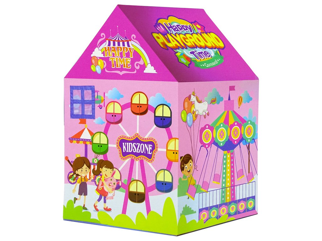 Stan Domeček Veselý lunapark pro děti růžový Vaše dítě miluje lunapark, velké kolotoče, houpačky, ideální místo na hraní, které přináší spoustu radosti a úsměvů! Představujeme vám stan, který dodá hraní zcela nový rozměr