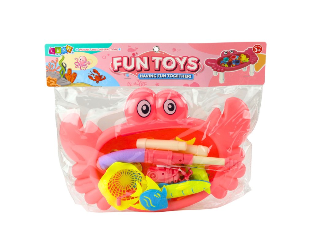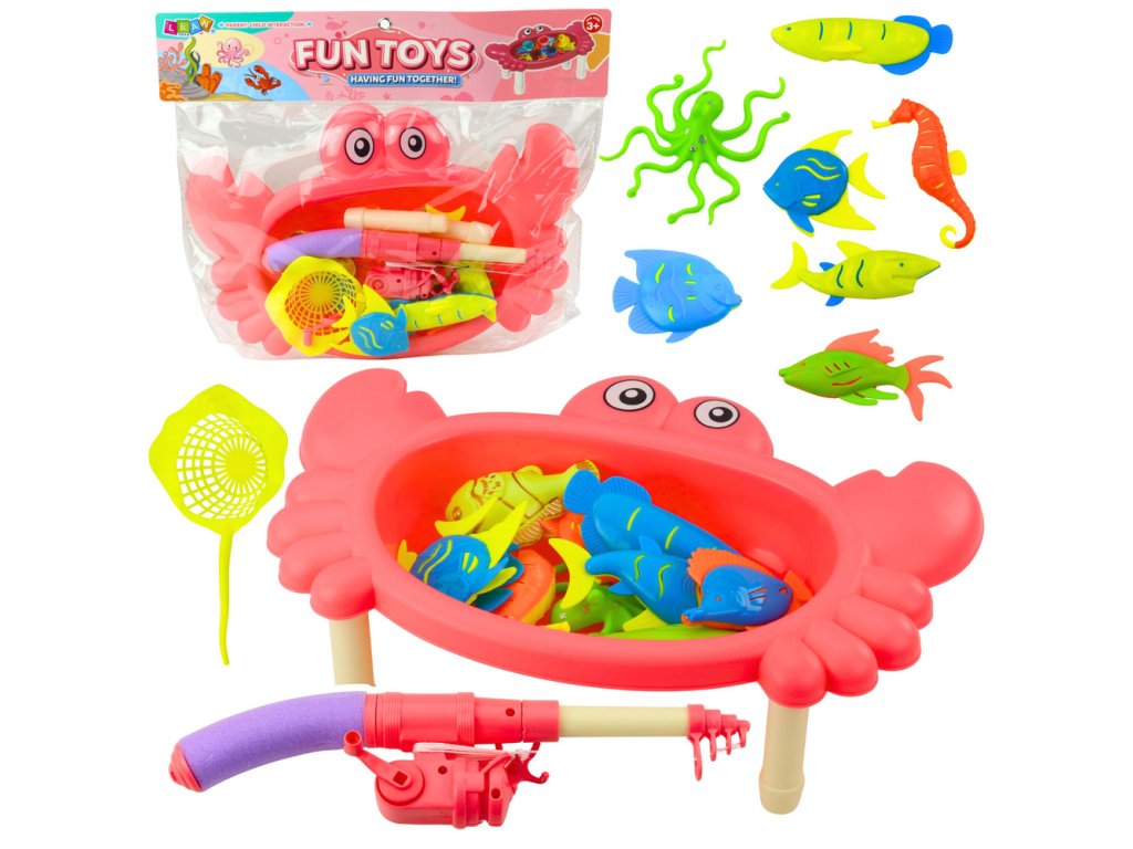 Dětský rybářský set Krab - růžový stolek s 10 rybkami a sítkem