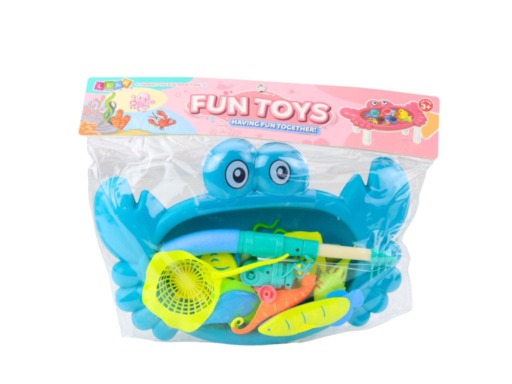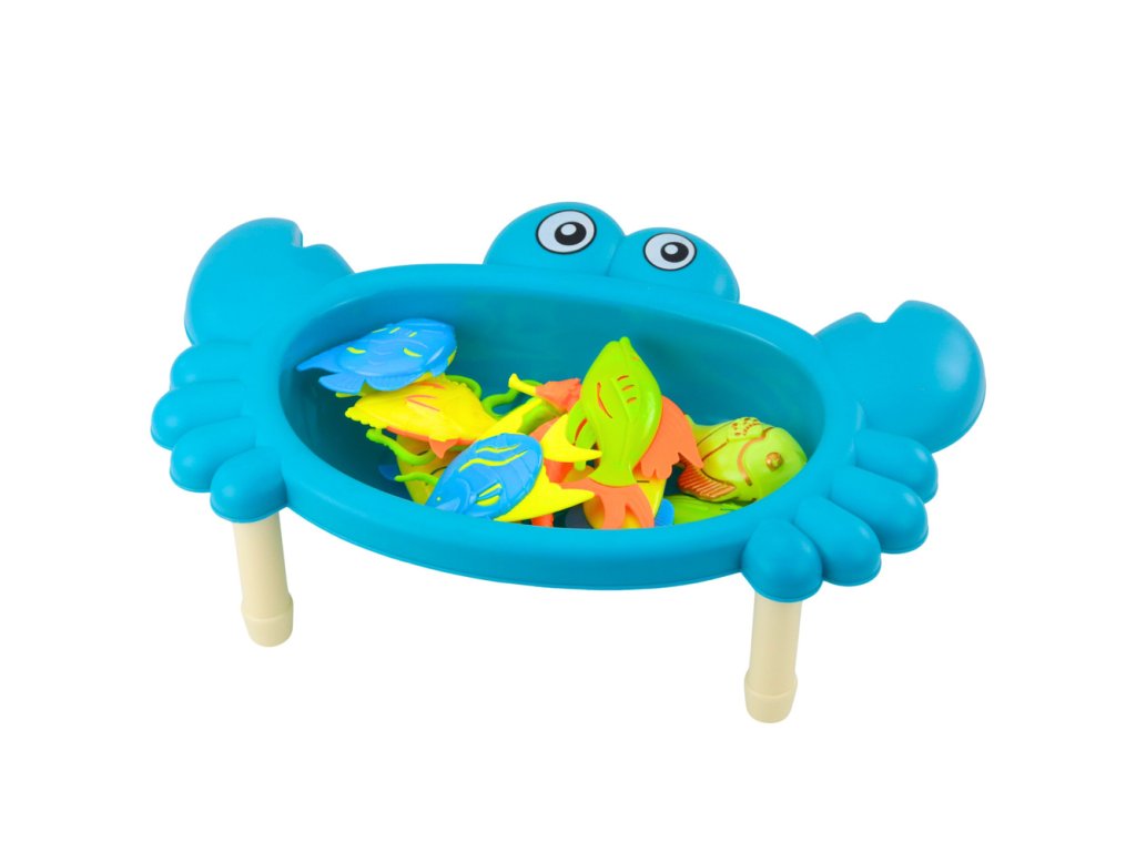 Dětský Rybářský Stoleček Krab s Rybkami a Vybavením – Modrá Barva