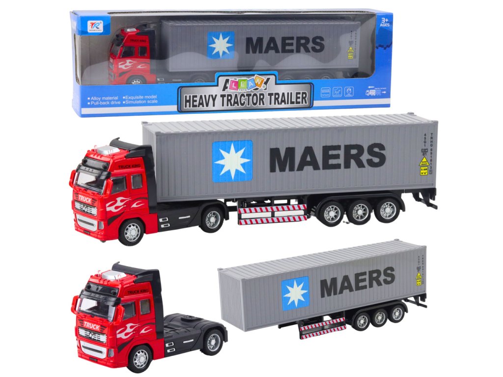 Představujeme tahač s kontejnerem s natahovacím mechanismem, který nadchne každého fanouška náklaďáků a automobilové techniky Tento realistický model je vyroben z vysoce kvalitních materiálů, které kombinují kovové a odolné plastové prvky, zajišťující dlouhou životnost a bezpečnost při hraní