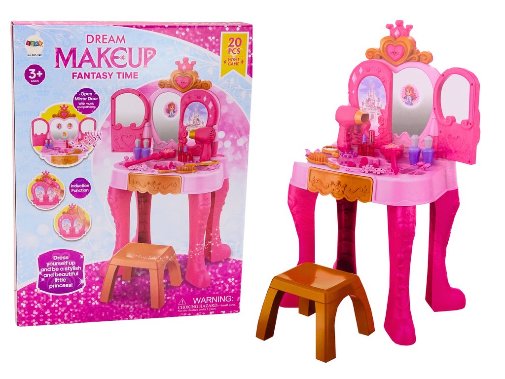 - Objevte kouzelný svět s Dětským Toaletním Stolkem s Gestovým Senzorem Růžový s Příslušenstvím, ideální pro vaši malou princeznu