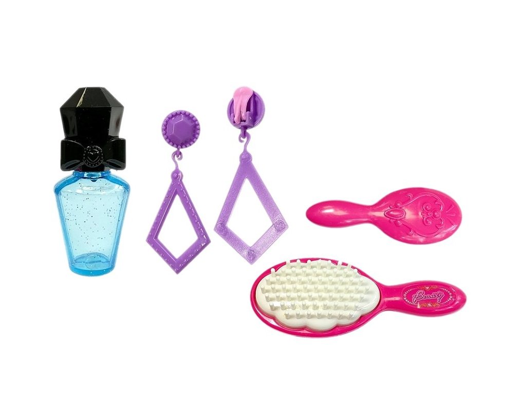 - Kosmetické doplňky: Součástí je fén, kartáč, náramky, rtěnka a další pro autentický kosmetický zážitek