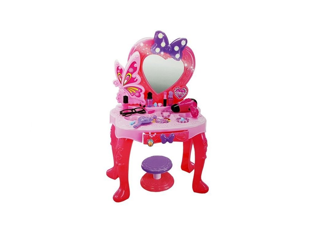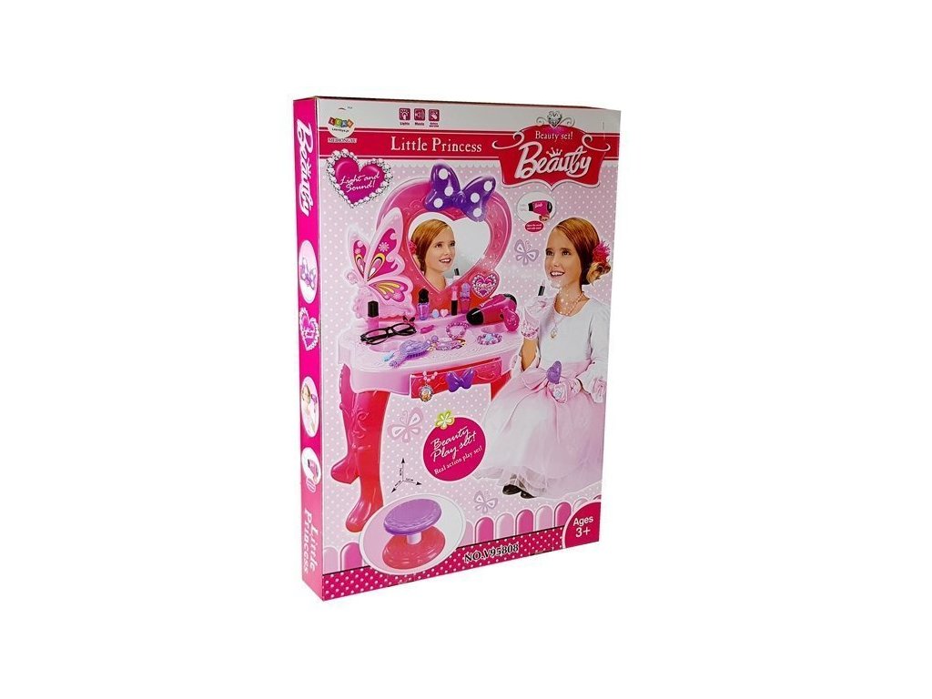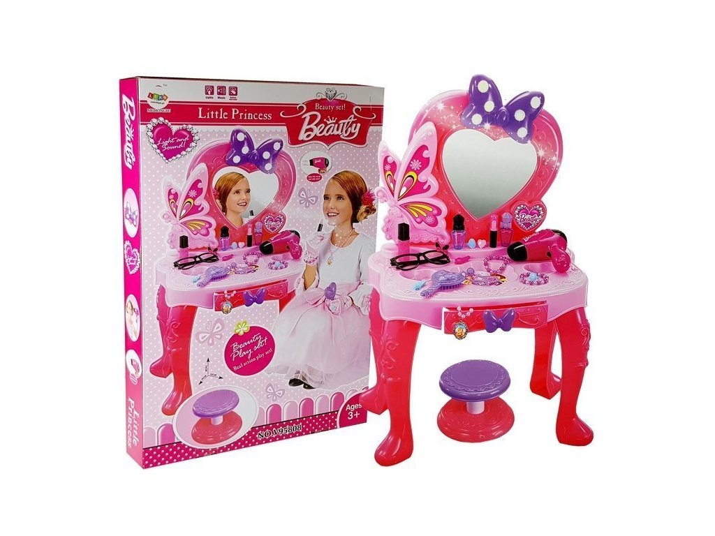 - S objevováním módy a krásy seznámí Dětský toaletní stolek s kosmetickými doplňky se zrcadlem, světly a zvuky každou malou princeznu!