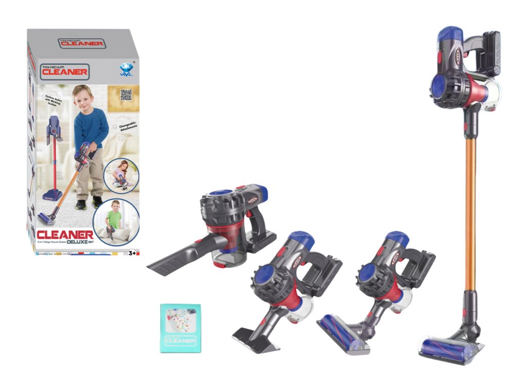 Nečekejte však jen obyčejnou hračku! Světelné efekty odlišují tento odkurzač od běžných modelů, což spolu s dvěma speciálními nástavci umožňuje dětem různé druhy uklízecích aktivit, čímž se zvýší realismus a možnosti hry. Bezpečnost je zajištěna díky vysoce kvalitním materiálům, které jsou nezávadné pro děti a zaručují dlouhou životnost hračky.
